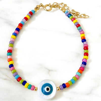 multicolor beads and evil eye adjustable Bracelet