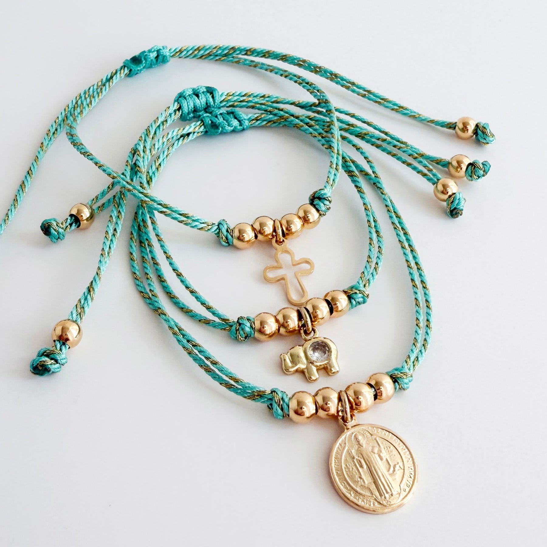 Saint Benedict - Elephant - Star - charm turquoise Adjustable Bracelet