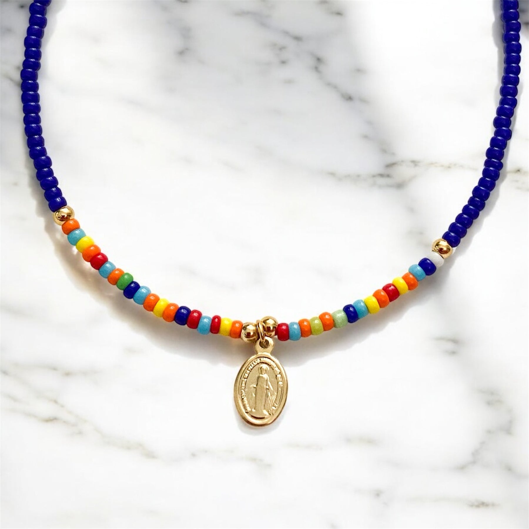 14 inch with a 2 inch extension made of beads and 18k gold filled details.