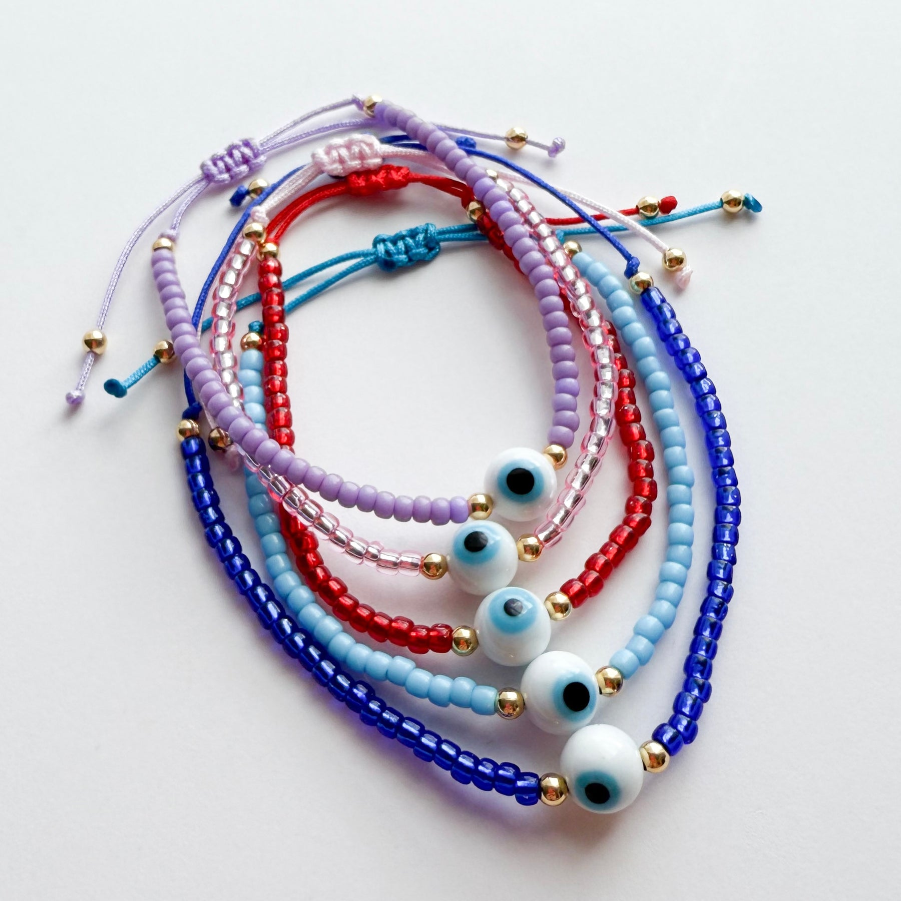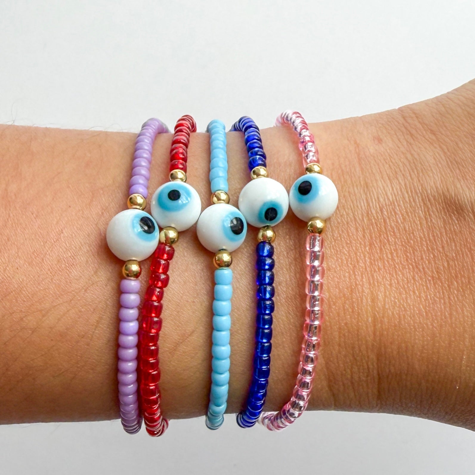 Protect your energy in style with our Evil Eye Beaded Bracelets, handmade with colorful tiny seed beads and the iconic evil eye charm for good luck and protection.