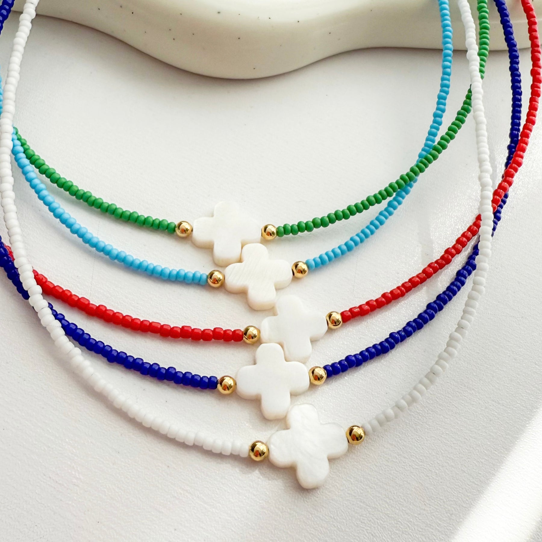 Bring a touch of coastal charm to your style with our Beaded Shell Cross Necklace. Hand-crafted with colorful beads and finished with 18K gold filled details, this necklace is the perfect mix of trendy and timeless.