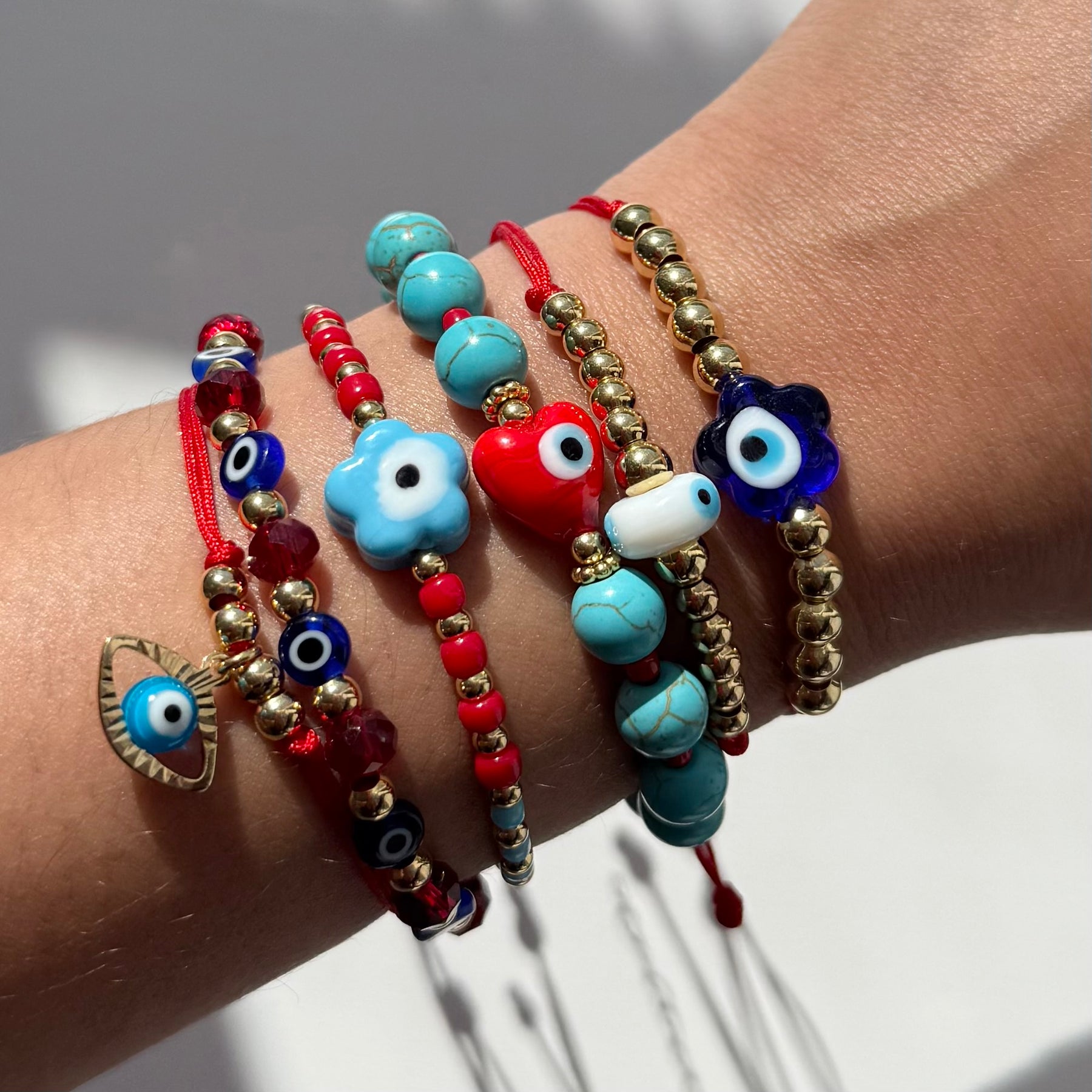 This handmade bracelet features an adjustable red cord and a shimmering light blue crystal evil eye medal, designed to ward off negativity and bring peace, clarity, and luck to the wearer. Lightweight and meaningful, itβs perfect for everyday wear or as a thoughtful gift.