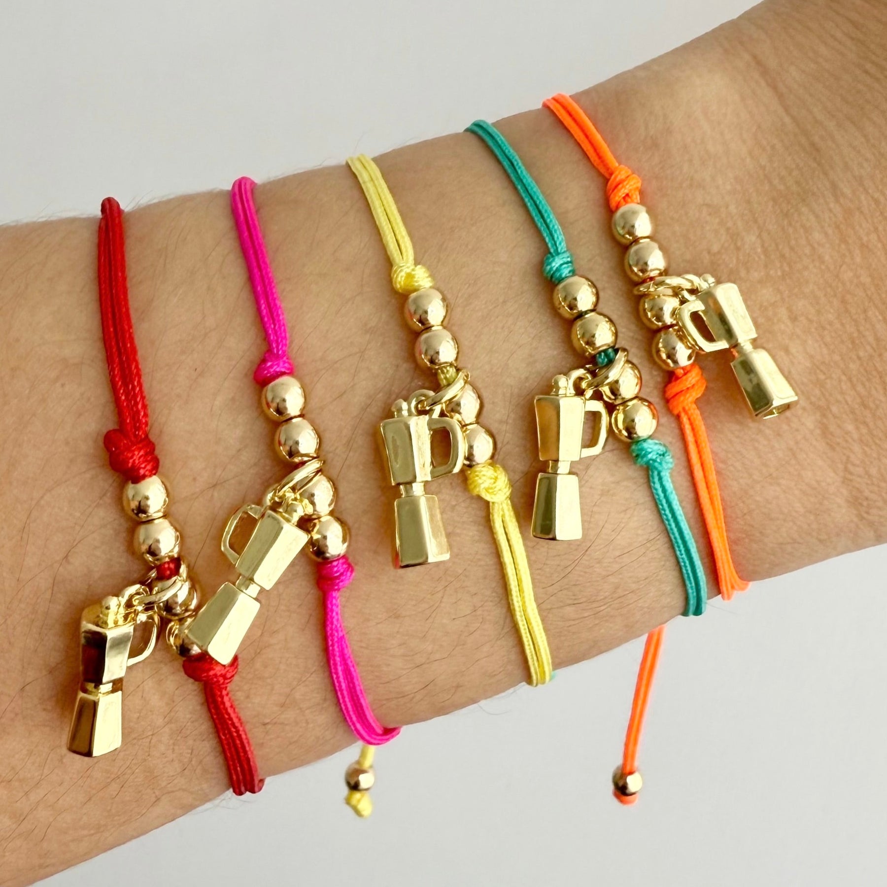 DETAILS: Handmade adjustable bracelet. Nylon cord and 18k gold filled charms and beads