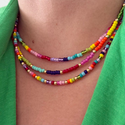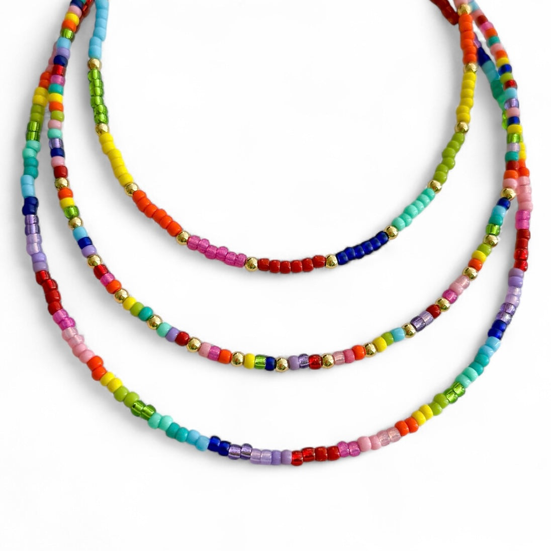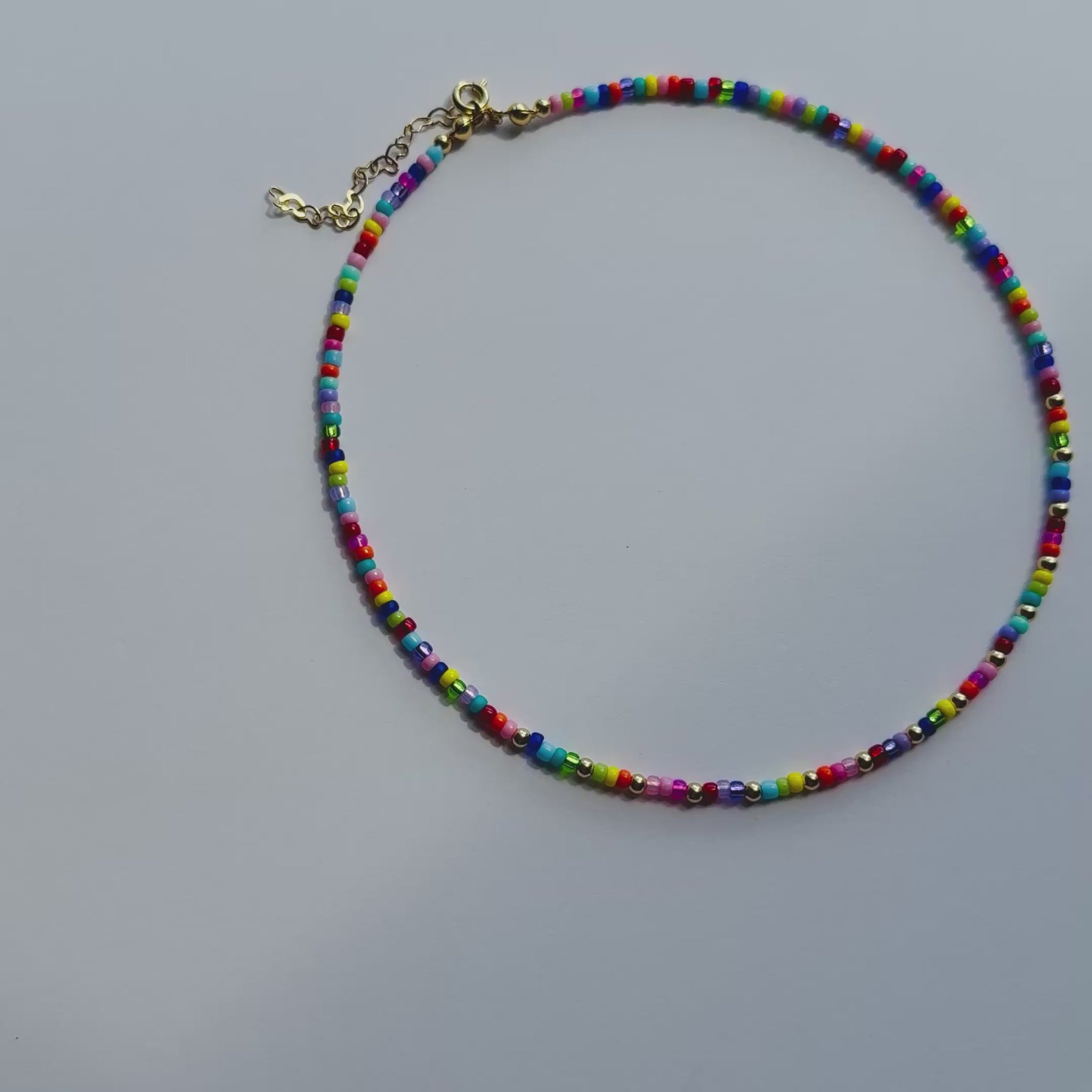 Add a pop of color to any outfit with this fun, handmade necklace featuring vibrant beads and elegant gold spacers. Lightweight, versatile, and perfect for everyday wear — it’s the piece you’ll reach for again and again.