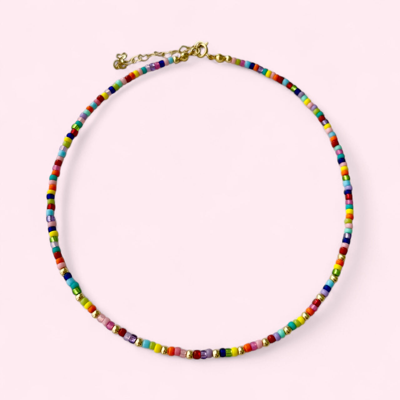 Bring color and shine to your everyday look with this handmade multicolor beaded necklace, designed with premium seed beads and elegant 18K gold filled details. Perfect for layering or wearing solo, it’s a unique piece that adds personality and style to any outfit.