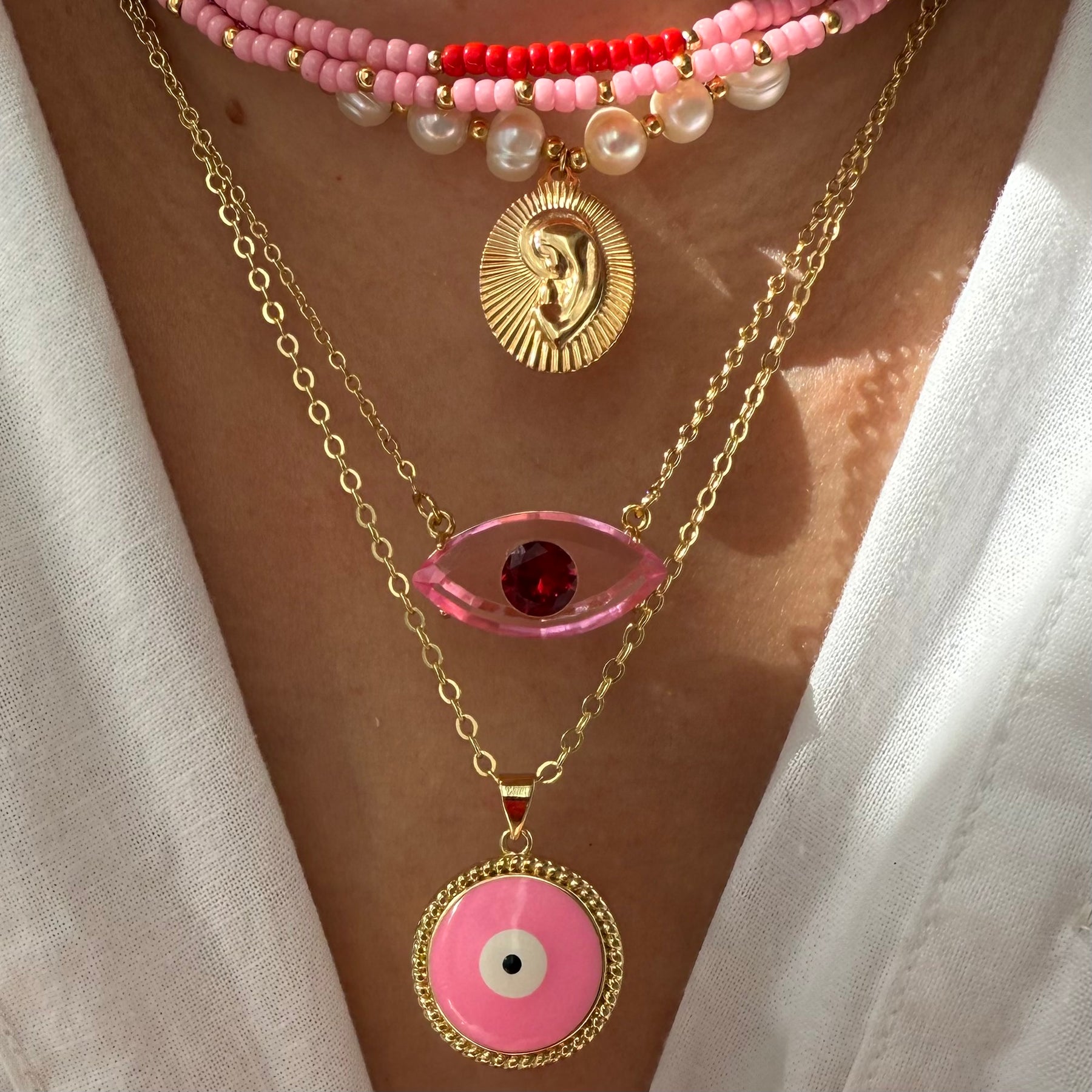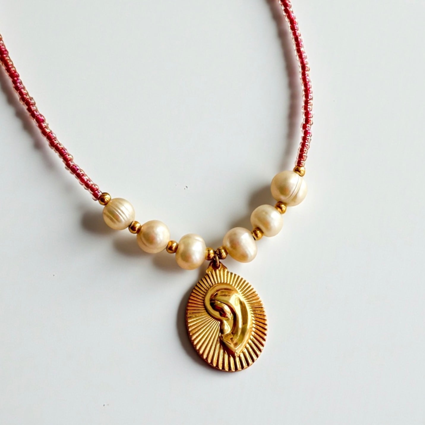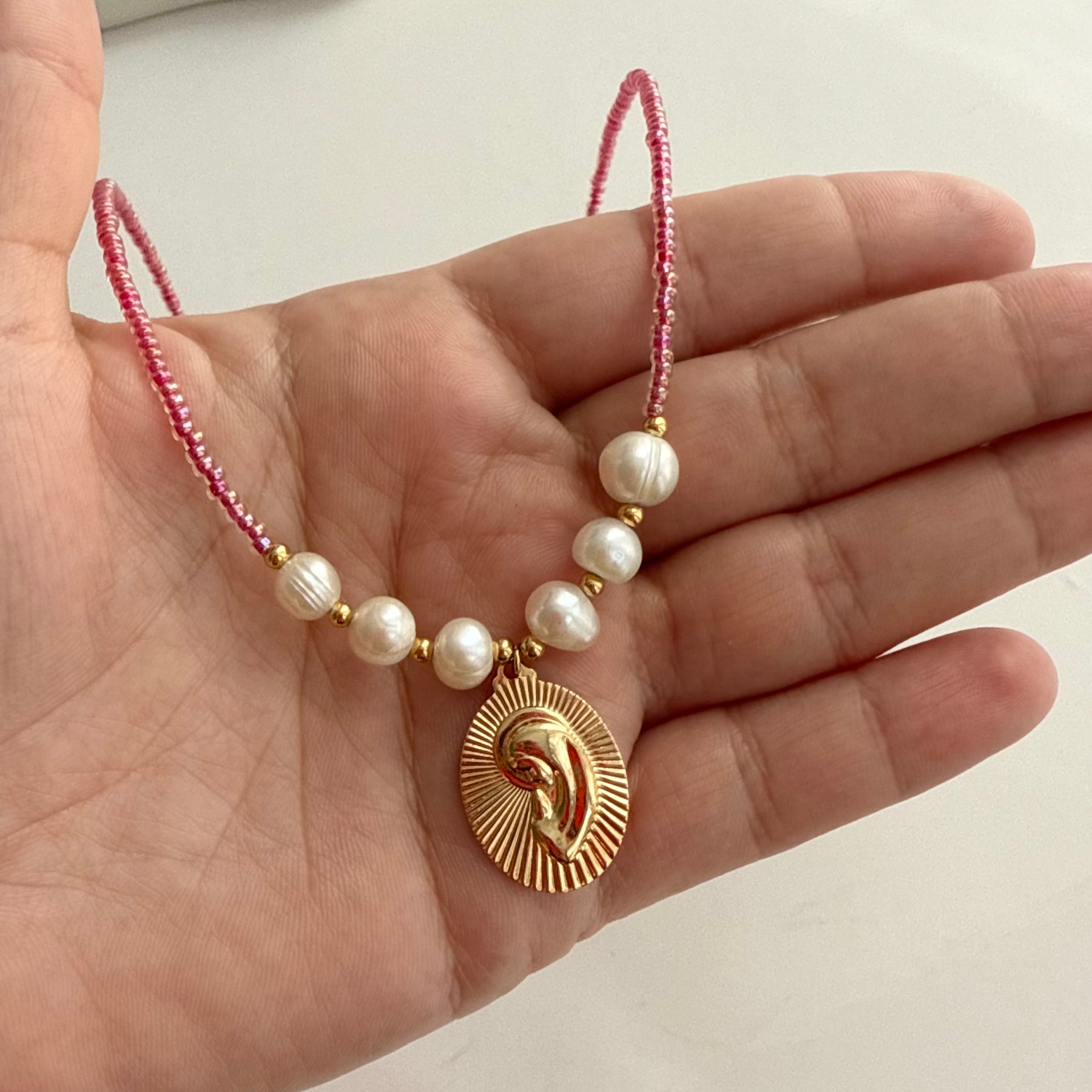 Handmade beaded necklace 14 inch chain with a 2 inch extension made of beads and 18k gold filled details.